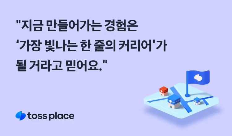 '드디어 네게 어울리는 옷을 입었구나!' 라는 반응이었어요. 직전 회사도 오프라인 결제시장에 속한 기업이었기 때문에 제 커리어의 큰 방향은 유지하고 있다고 말씀드릴 수 있을거예요. 하지만 과거에는 아이디어가 있어도 쉽게 실행하기 어려웠고, 그것을 해결하기 위해선 창업까지 고민하게 만들었어요. 토스플레이스는 불확실성에 주저하던 제게 도전할 기회와 실패할 용기를 주었어요. 그것도 너무 당연하다는 듯 말이죠. 그래서 주변 사람들은 진짜 네가 하고 싶었던 일을 하게 된 것 같다고 함께 좋아해 주었구요. 토스플레이스에서 성공하든 실패하든 ‘내 인생에 가장 빛나는 한 줄의 커리어’가 될 거라고 믿어요. 성공하면 불가능해 보였던 혁신을 이뤄낸 문샷(moon-shot)이 될 것이고 만약 실패하더라도 이런 빛나는 실패 이력을 가진 사람은 저뿐일 테니까요. 제게 '어울리는 옷'을 뽐내게 될 날을 그려봅니다.